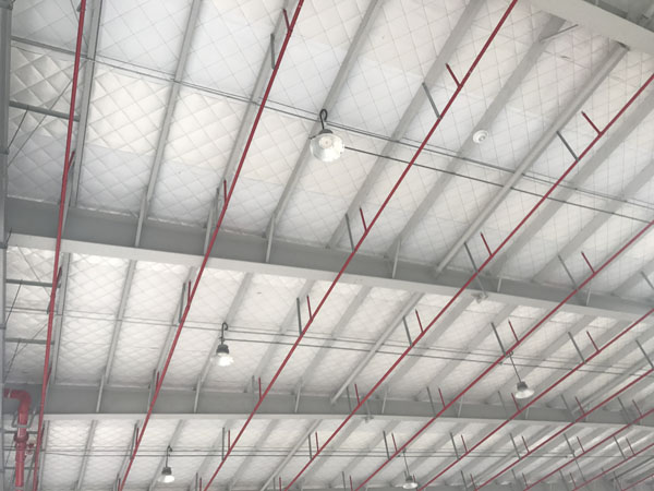 辦公區(qū)消防噴淋系統(tǒng)也已經(jīng)安裝到位。
