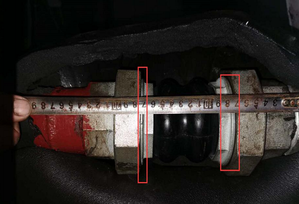 2020 年 8 月 30 日下午 17 點 24 分收到某工地現(xiàn)場反饋以及圖片,客戶反映 DN65 絲扣橡膠接頭,一個出現(xiàn)橡膠體爆了,實際是橡膠體拉脫(見圖一)。我廠安排人員 2020 年 9 月 1 號早上 10 點 30 分到達現(xiàn)場查看情況,經(jīng)查看安裝情況,發(fā)現(xiàn)絲扣安裝存在錯位現(xiàn)象(見圖二),管道彎頭處未進行有效的固定(見圖三、四、五), 更換的絲扣存在未緊固到位現(xiàn)象(圖六)。