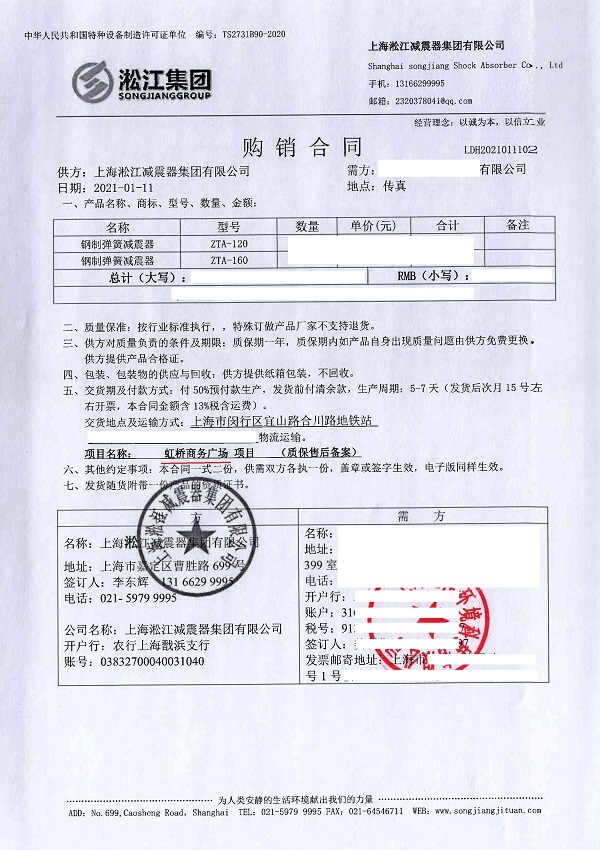 【上海虹橋國際商務(wù)廣場】鋼制彈簧減震器合同
